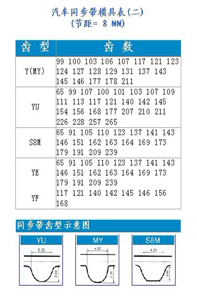 | 齒 型 | 節(jié) 距(mm) | 齒 高(mm) | 查 看 |